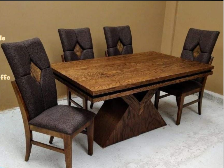 Incluye: 4 Sillas tapizadas con tela de calidad. Mesa de madera de pino.