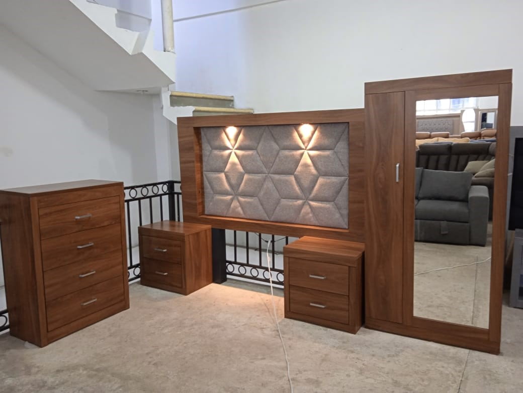 Incluye: 1 cómoda, 2 buros, 1 pie de cama 1 Espejo 1 Cabecera con tapizado…