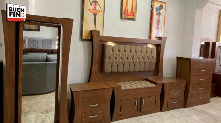 Incluye: 2 buros Cabecera Pie de cama Tocador con espejo tipo hollywood con múltiples compartimentos…
